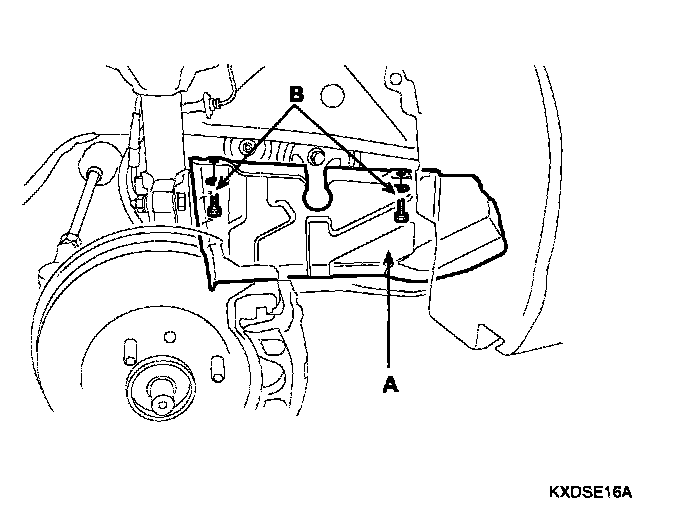 5) Remove the bolts (B) and air cleaner lower cover(A).
