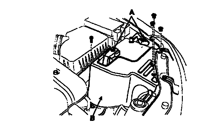 1. Disconnect the battery terminals (A) and remove the heat shield (B).