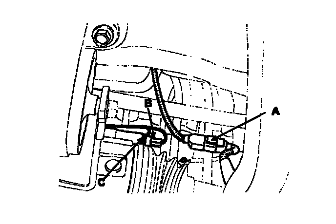 7. Remove the Automatic Transaxle Fluid (ATF) cooler hose(A).