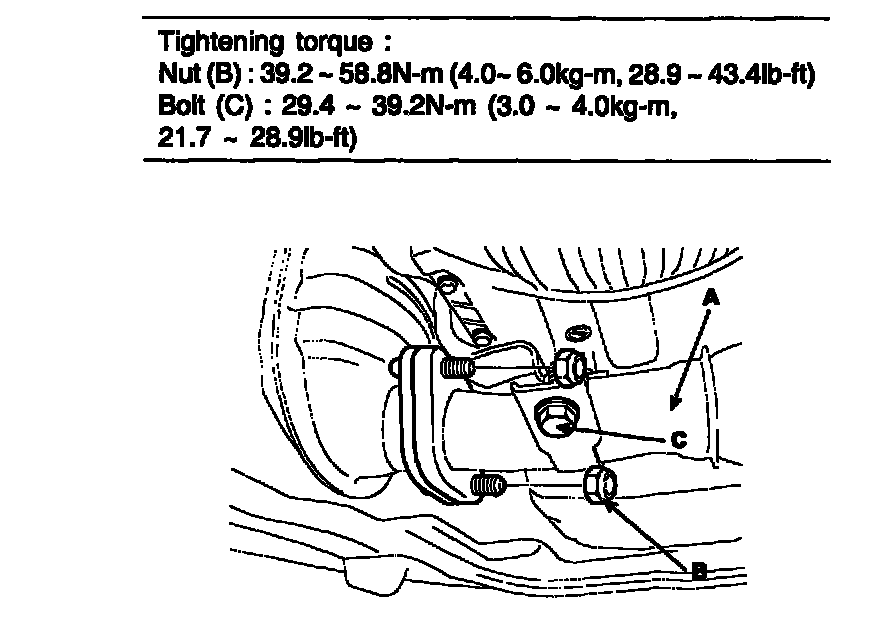 Nut (B): 39.2 - 58.8 Nm (4.0 - 6.0 kg-m, 28.9 - 43.4 ft. lbs.)