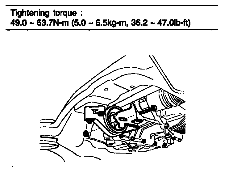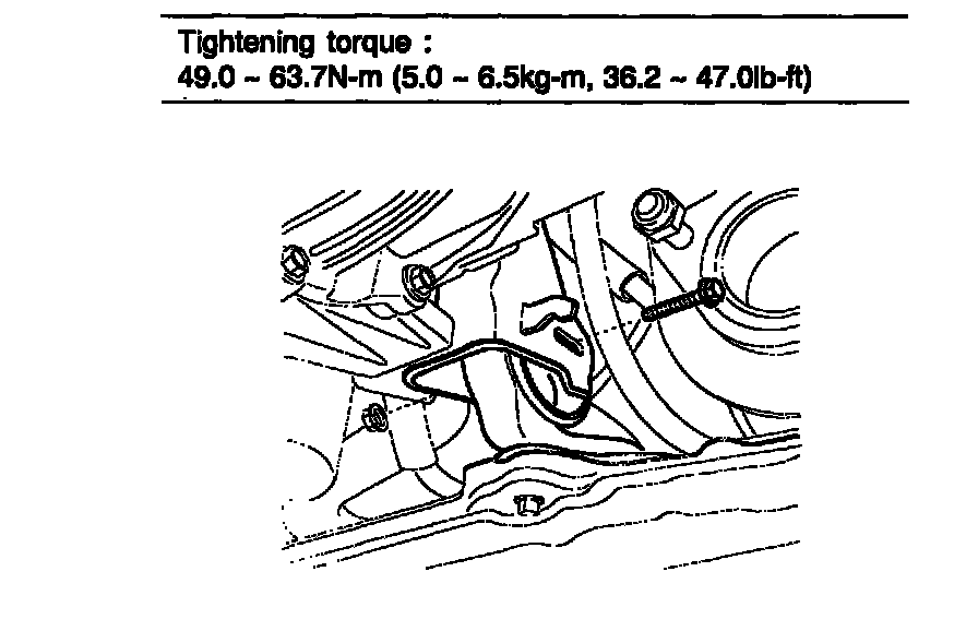 Tightening torque: 49.0 - 63.7 Nm (5.0 - 6.5 kg-m, 36.2 - 47.0 ft. lbs.)