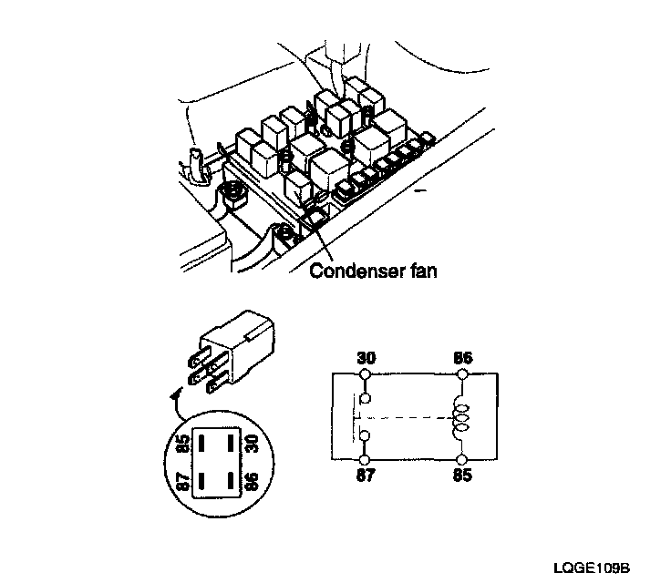 CONDENSER FAN RELAY (TYPE A)Check for continuity between the terminals.