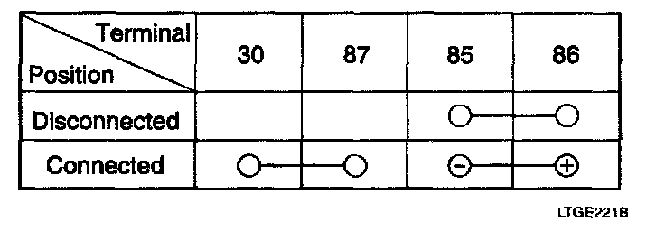 2. There should be no continuity between the No.87 and No.30 terminals when power is disconnected.