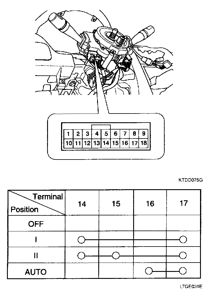 Operate the auto light switch, then check for continuity between terminals of 18P multi-function switch connector.