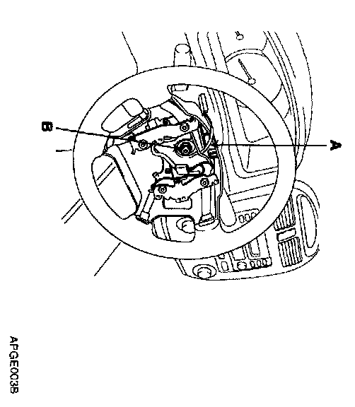 3. Disconnect the horn connector and the air bag module connector, and remove the air bag module (B).