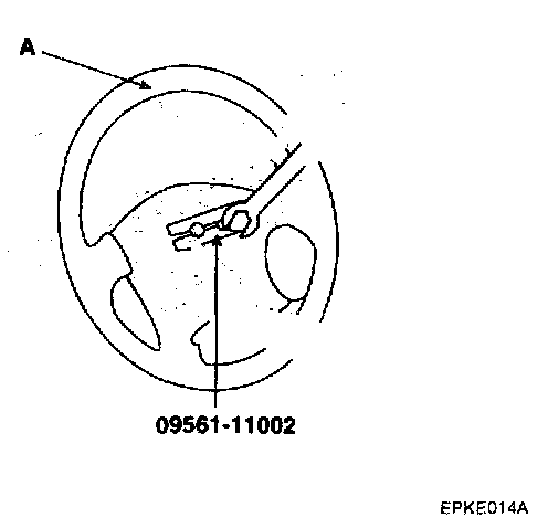 5. Align the steering shaft with wheel then remove the steering wheel(A) using special tool (09561-11002).