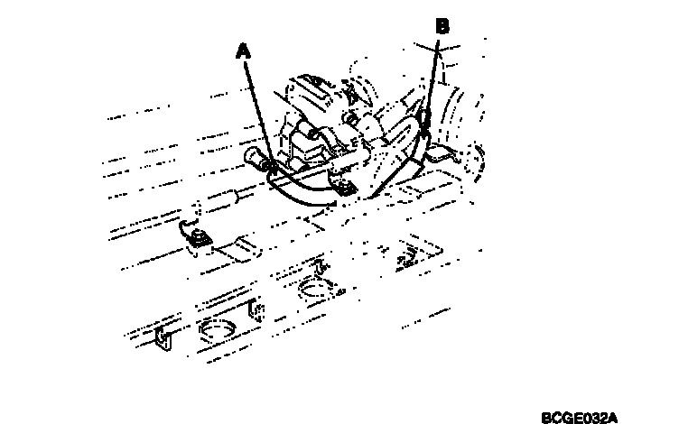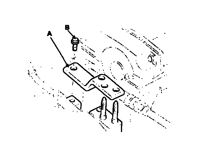 1) Install the engine mounting support bracket stay plate(A) with bolt (B).