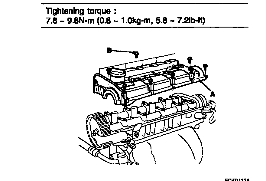 Tightening torque: 7.8 - 9.8Nm (0.8 - 1.0 kg-m, 5.8 - 7.2 ft. lbs.)