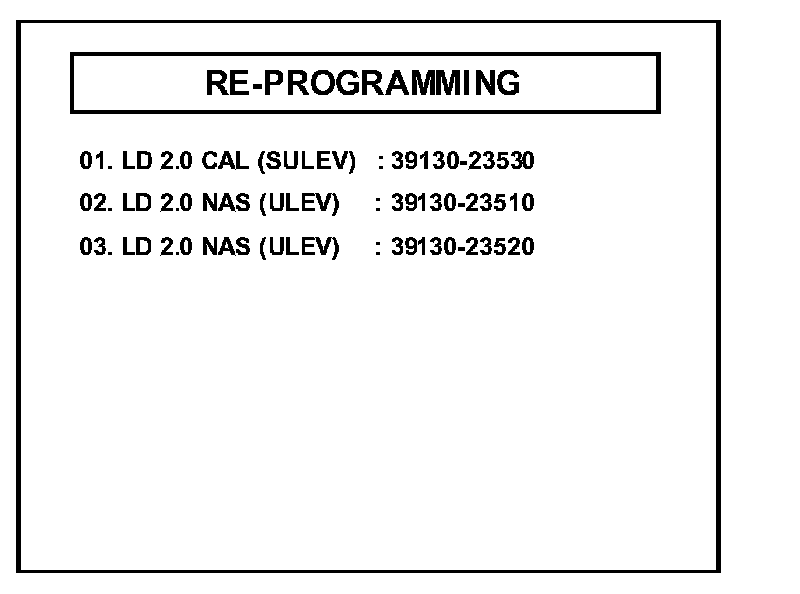 2. Select option "02. LD 2.0 CVVT 1->2 SHIFT FEEL [ERROR]" for manual upgrade and press "ENTER".