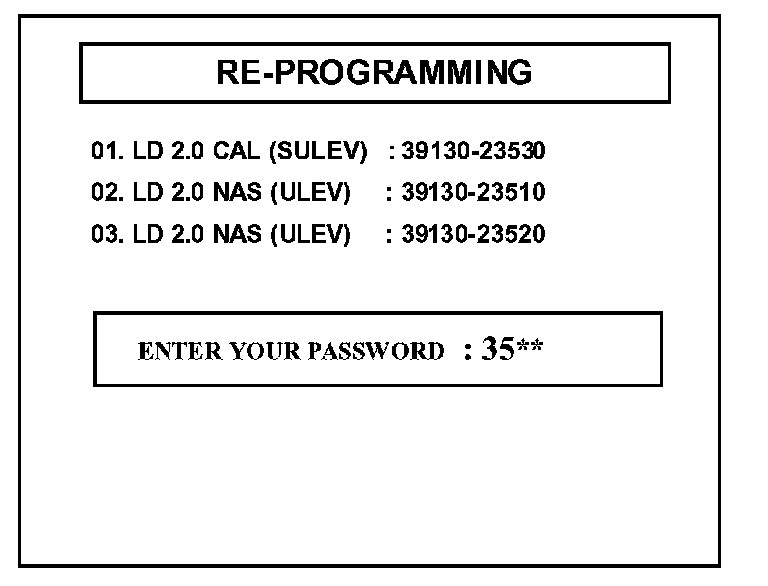 4. Enter the correct password according to the vehicle ECU part number as shown in the table and press "ENTER".