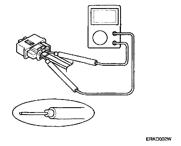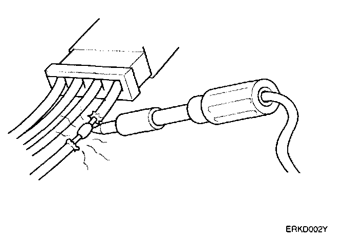- When using electrical test equipment, insert the probe of the tester into the wire side of the connector. Do not insert the probe of the tester into the terminal side of the connector, and do not tamper with the connector.