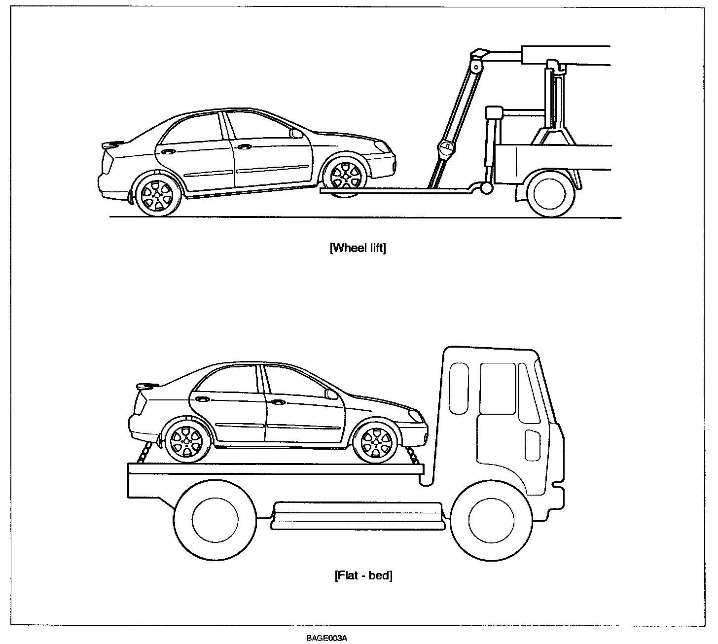 Never tow the vehicle by the method of a suspension (front or rear) lilt.