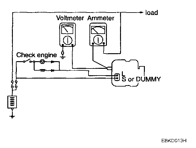 1. Check to see that the voltmeter reads as the same value as the battery voltage If the voltmeter reads 0V, and the open circuit in the wire between alternator "B' terminal and battery (-) terminal or poor grounding is suspected