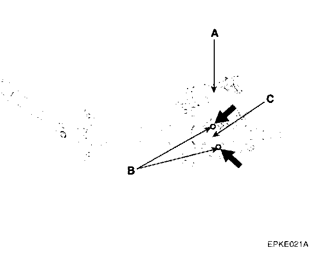 2. If it is necessary to remove the key lock assembly (A), use a punch to make a groove on the head of the special bolt (B), and then use a screwdriver to remove the key lock assembly mounting bracket (C).