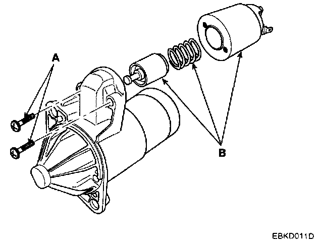 DISASSEMBLY1. Disconnect the M-terminal (A) on the magnet switch assembly (B).