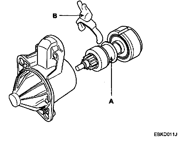 4. Remove the rear bracket (A) and brush holder assembly (B).