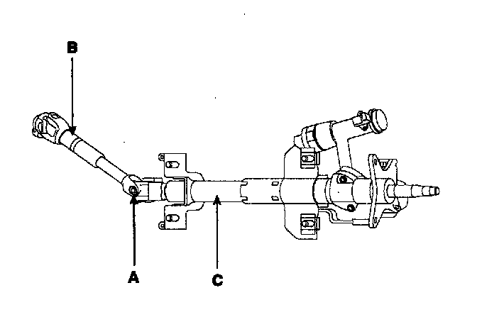 UNIVERSAL JOINT ASSEMBLY1. Remove the bolt(A) connecting the universal joint assembly(B) and the steering column and shaft assembly(C).