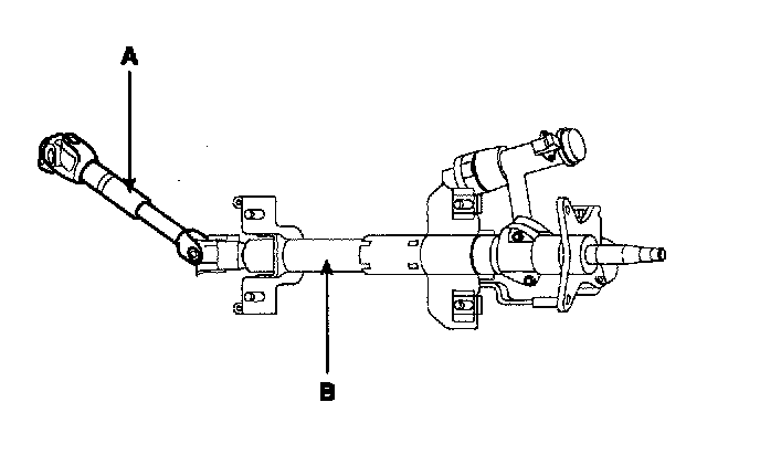 2. Remove the universal joint assembly(A) from the steering column and shaft assembly(B).