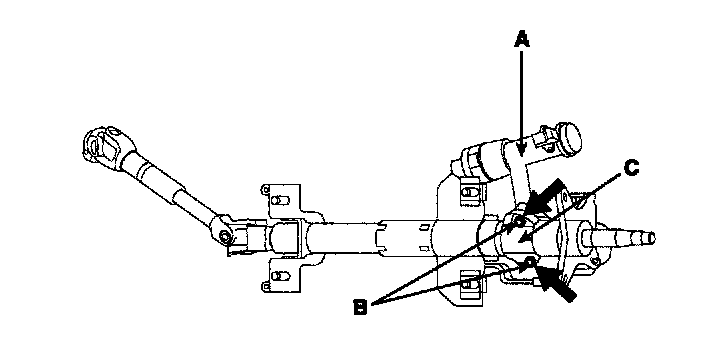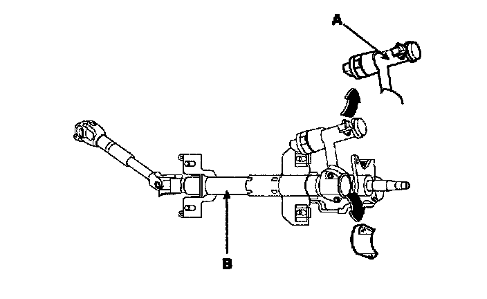2. Disassemble the key lock assembly(A) from the steering column and shaft assembly(B).