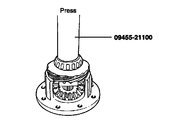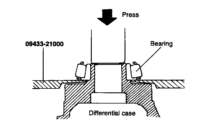7. Install the taper roller bearings on both sides of the differential case using the special tool (09455-21100).