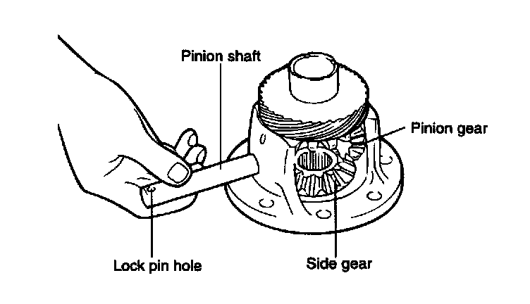 6. Align the pinion shaft lock pin hole with the case lock pin hole and insert the lock pin.