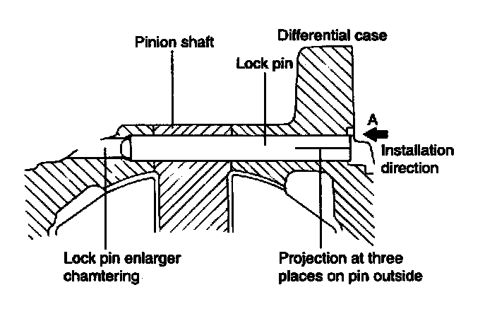 - The lock pin head must be sunk below the flange surface of the differential case.