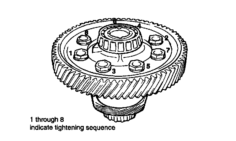 2. Remove the differential drive gear retaining bolts and remove the differential drive gear from the case.