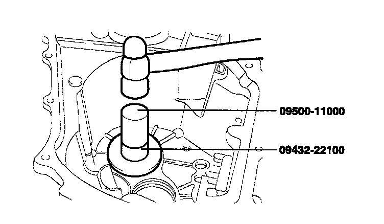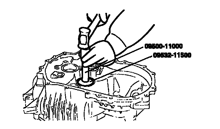 4. Install the output shaft bearing outer race using the special tools (09500-11000, 9532-11500).