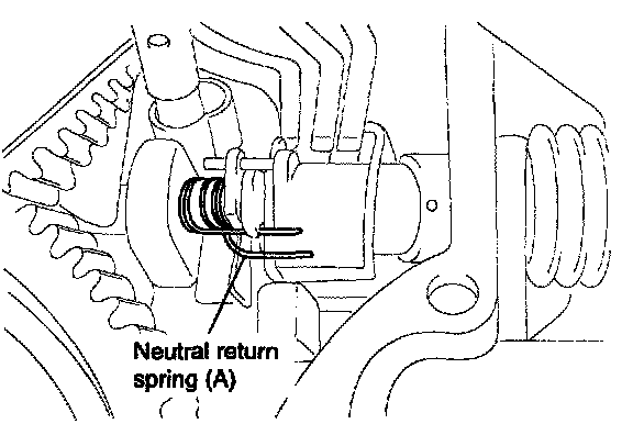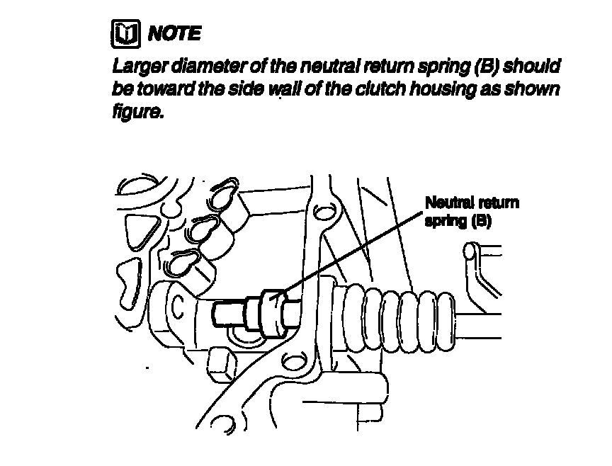NOTE: Larger diameter of the neutral return spring (B) should be toward the side wall of the clutch housing as shown figure.