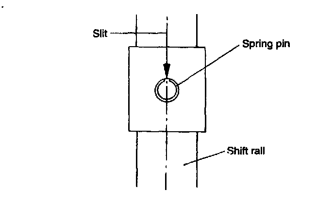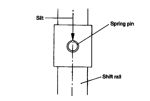 2) When installing, make sure that the slit of the spring pin is aligned with center line of the shift rail.
