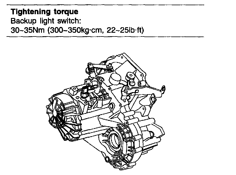 Backup light switch: 30 - 35 Nm (300 - 350 kg-cm, 22 - 25 ft. lbs.)