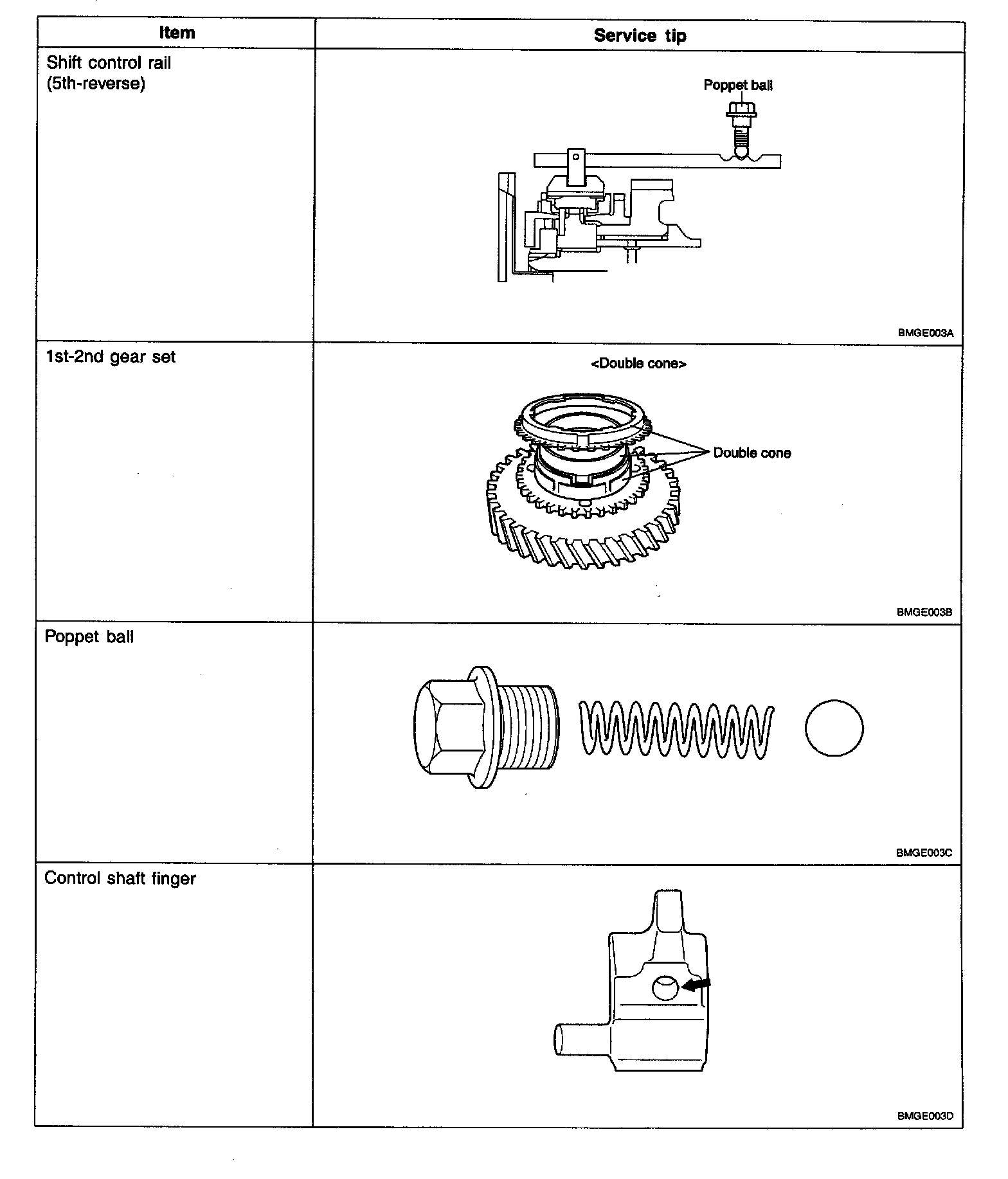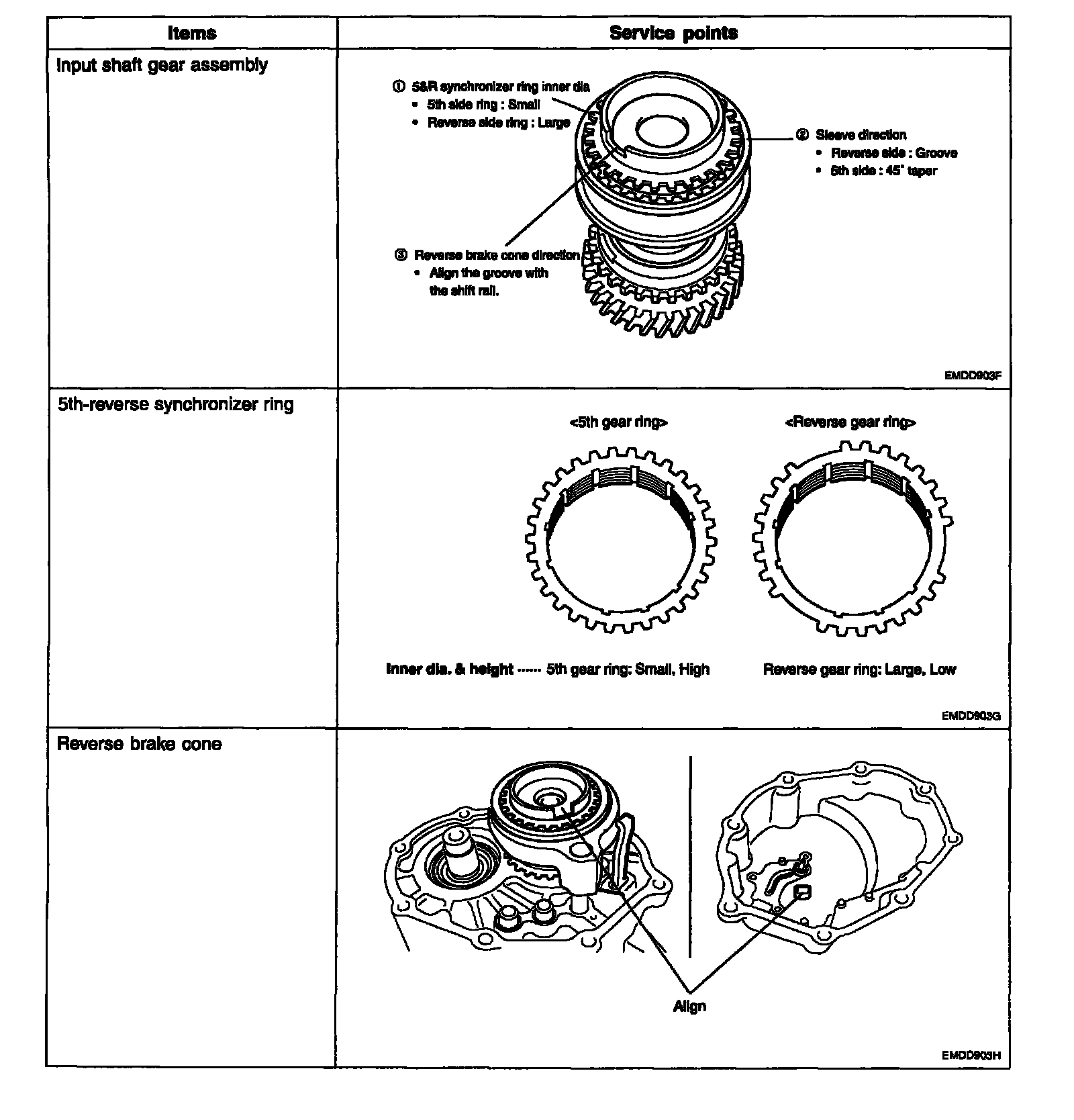 31. When installing, make sure that the slit of the spring pin is aligned with the center line of the shift rail.
