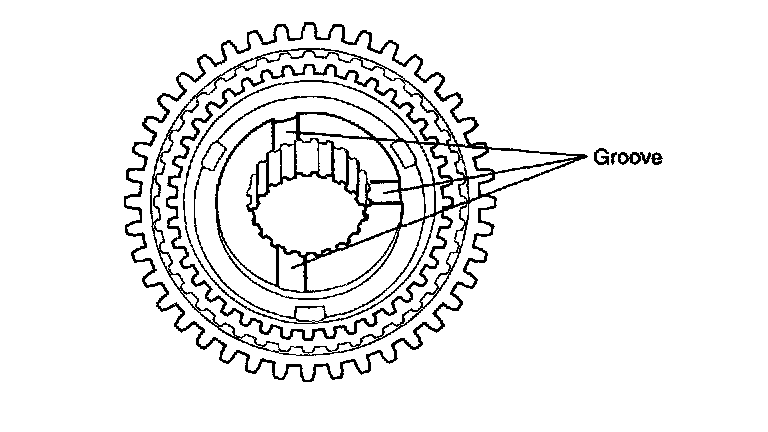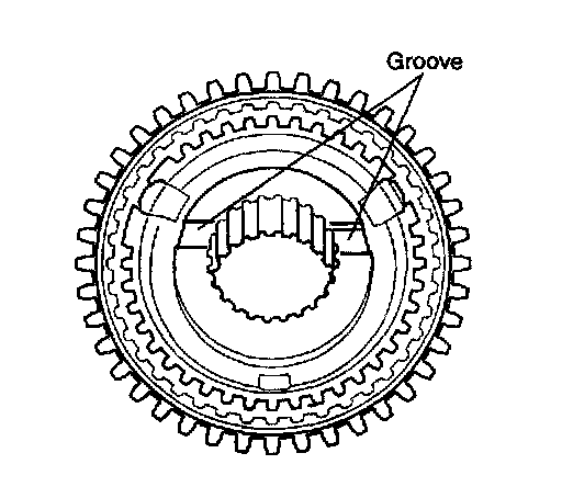 CAUTION: Place the oil groove of synchronizer hub toward the fifth speed gear.