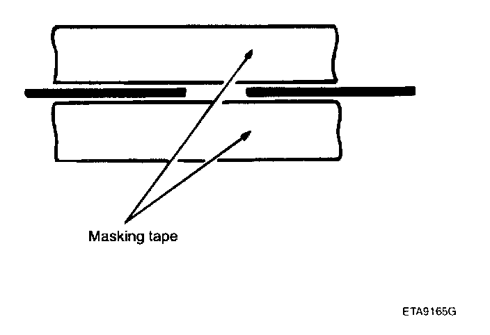 Wipe the glass adjacent to the broken heater line, clean with silicone remover and attach the masking tape as shown. Shake the conductive paint container well, and apply three coats with a brush at intervals of about 15 minutes apart. Remove the tape and allow sufficient time for drying before applying power. For a better finish, scrape away excess deposits with a knife after the paint has completely dried (Allow 24 hours).