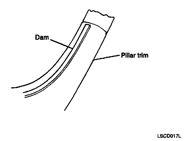 7. Install the self-adhesive foam dam to the body where the original dam had been.