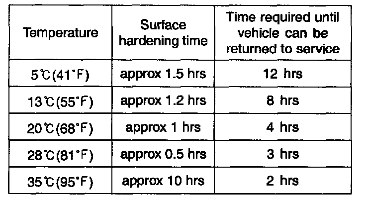 NOTE: The following cure times may be critical. Attempting to replace a windshield in ambient temperature over 35 °C (95 °F) should be avoided before completing the application.