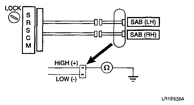 CHECK: On the SAB connector (harness side), measure the resistance between SAB high and body ground.