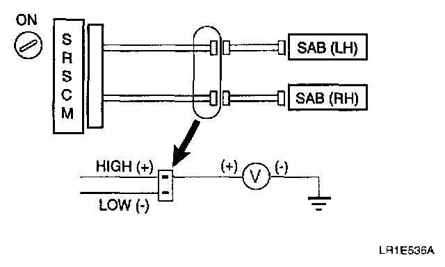 2. On the SAB connector (harness side), measure the voltage between SAB high and body ground.