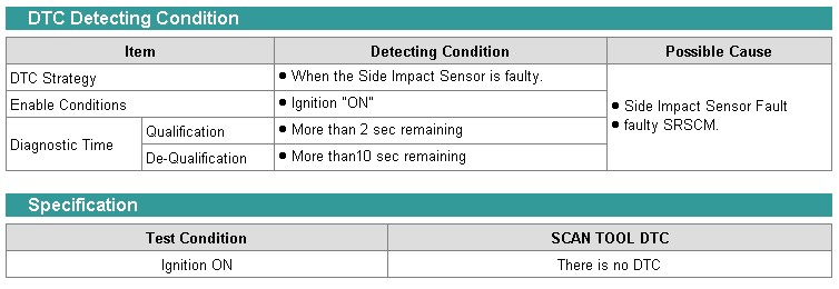 DTCs, B1400, B1401 and B1402, are recorded when a malfunction in the Side Impact Sensor assembly (left side) is detected.