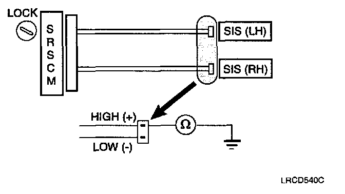 CHECK: On the SIS connector (harness side), measure the resistance between SIS high and body ground.