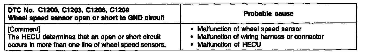 WHEEL SPEED SENSOR OPEN OR SHORT TO GND CIRCUIT