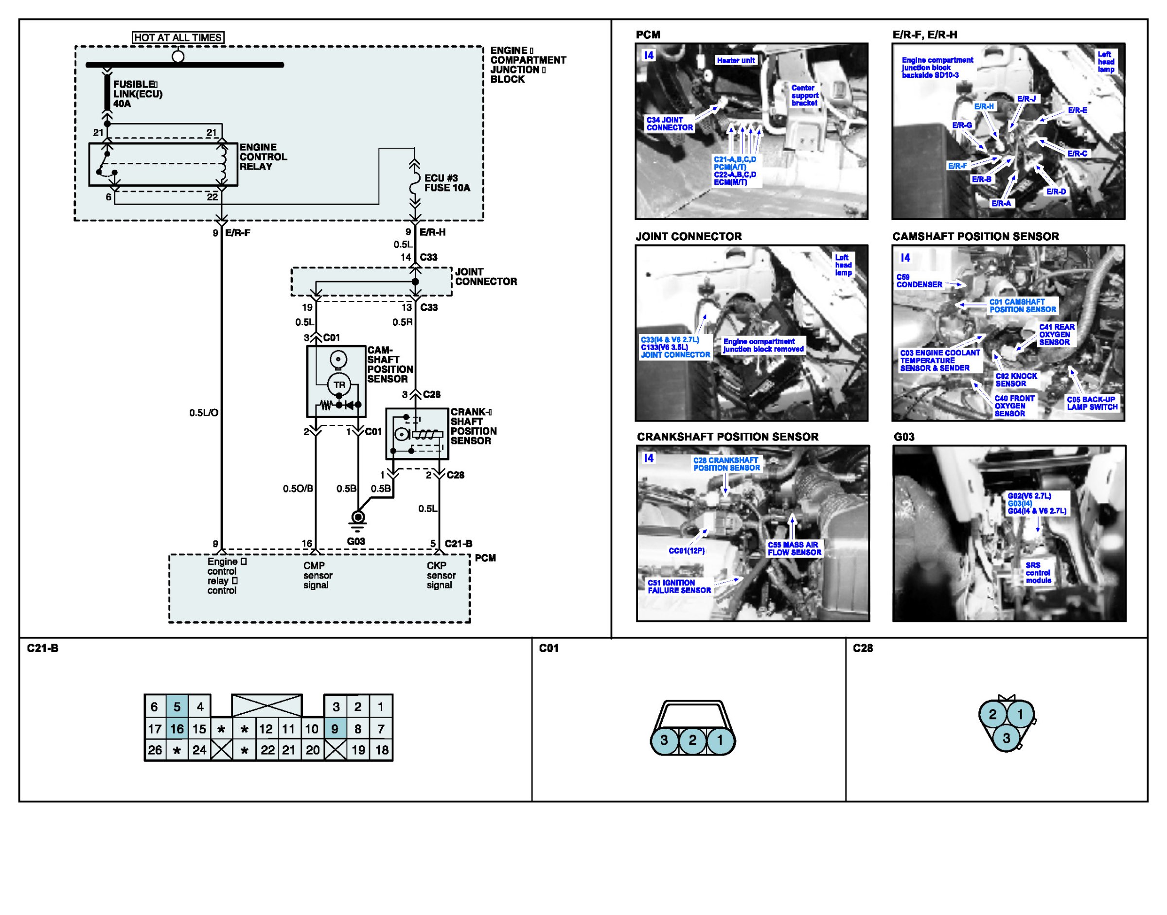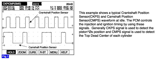 If the output voltage of CKPS remains low when the change of CMPS output voltage is zero, the ECM determines that a fault exists and a DTC is stored.