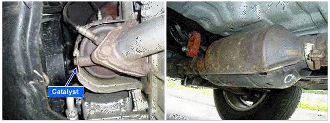 The catalyst's efficiency is demonstrated by its ability to oxidize CO and hydrocarbon emissions. The Powertrain Control Module (ECM) compares the output signals of the front and rear oxygen sensors to determine whether the output of the rear sensor is beginning to match the output of the front oxygen sensor. Air/fuel mixture compensation keeps the frequency of the front oxygen sensor high due to the changes from rich-to-lean comvustio. The catalyst causes the rear oxygen sensor to have a lower frequency. As the catalyst wears, the rear oxygen sensor's signal trace begins to match the front oxygen sensor's signal trace. That is because the catalyst becomes saturated with oxygen and cannot use the oxygen to convert hydrocarbon and CO into H2O and CO2 with the same efficiency as when it was new. A completely worn catalyst shows a 100% match between the frequency of the front and rear sensors.