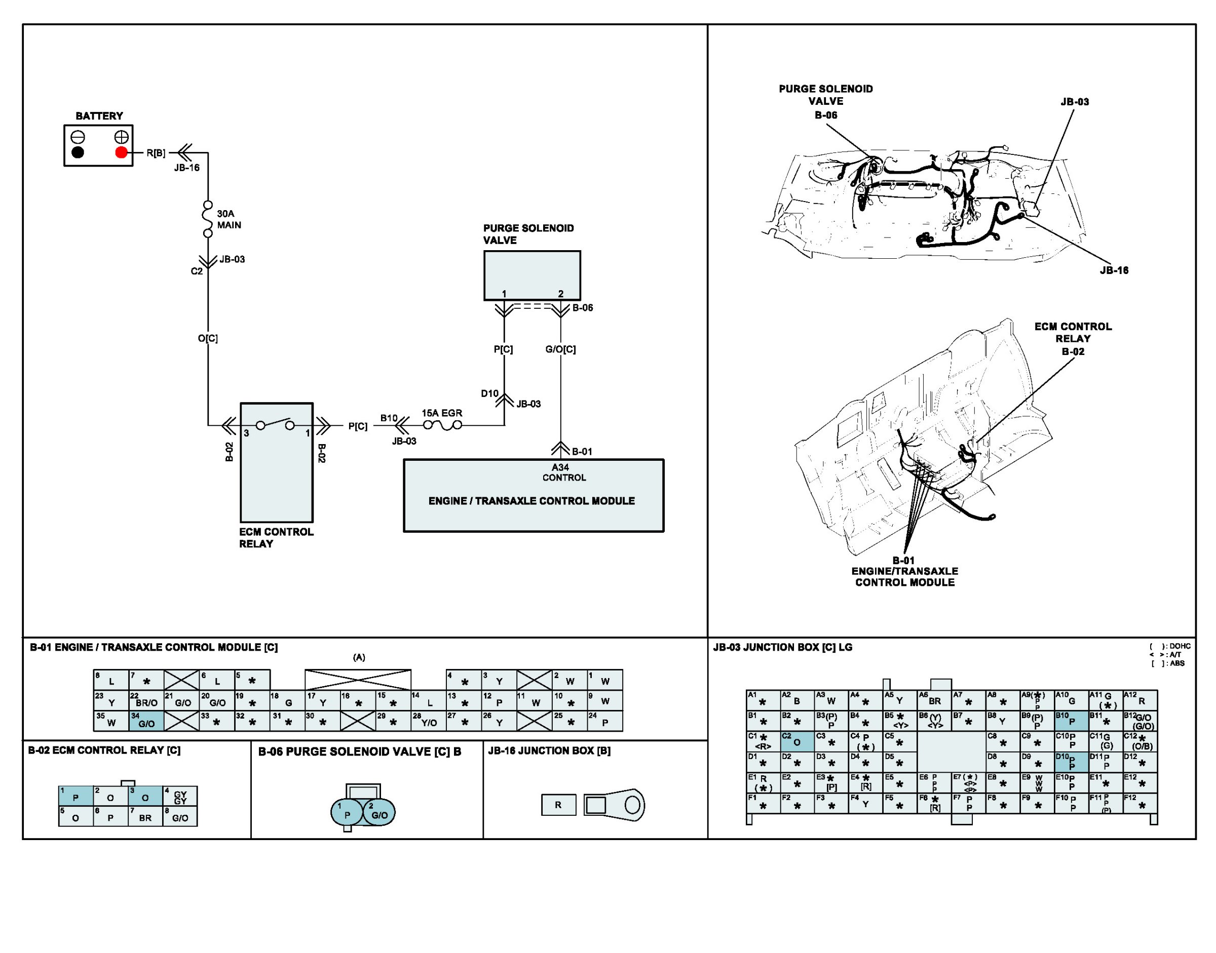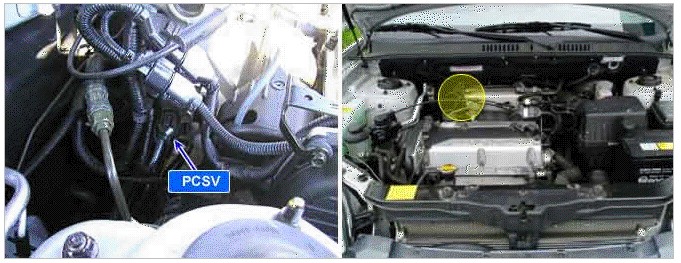 The evaporative emission control system prevents hydrocarbon (HC) vapors from the fuel tank from escaping into the atmosphere where they could form photochemical smog. Gasoline vapors are collected in the charcoal canister. The ECM controls the Purge Control Solenoid Valve (PCSV) to purge any collected vapors from the canister back to the engine for combustlon. This valve is actuated by the purge control signal from the ECM and controls fuel vapor flow from the canister to the intake manifold.