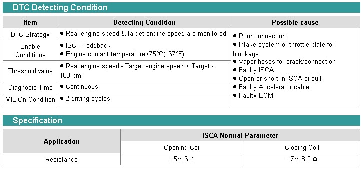 If the actual engine speed is less than the target engine speed at idle, the ECM determines that a fault exists and a DTC is stored.