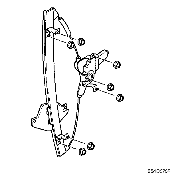 10. Tighten two glass mounting bolts on power window regulator assembly.