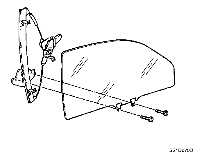 2. Loosely install two glass mounting bolts on window regulator assembly.
