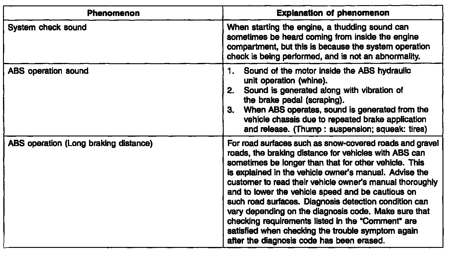NOTES WITH REGARD TO DIAGNOSISThe phenomena listed in the table shown are not abnormal.