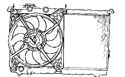 1. Check that the radiator fan rotates when battery voltage is applied between the terminals.