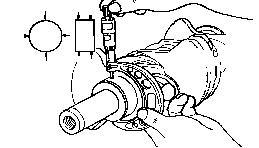 2. Inspect out-of-roundness and taper of crankshaft journal and pin.